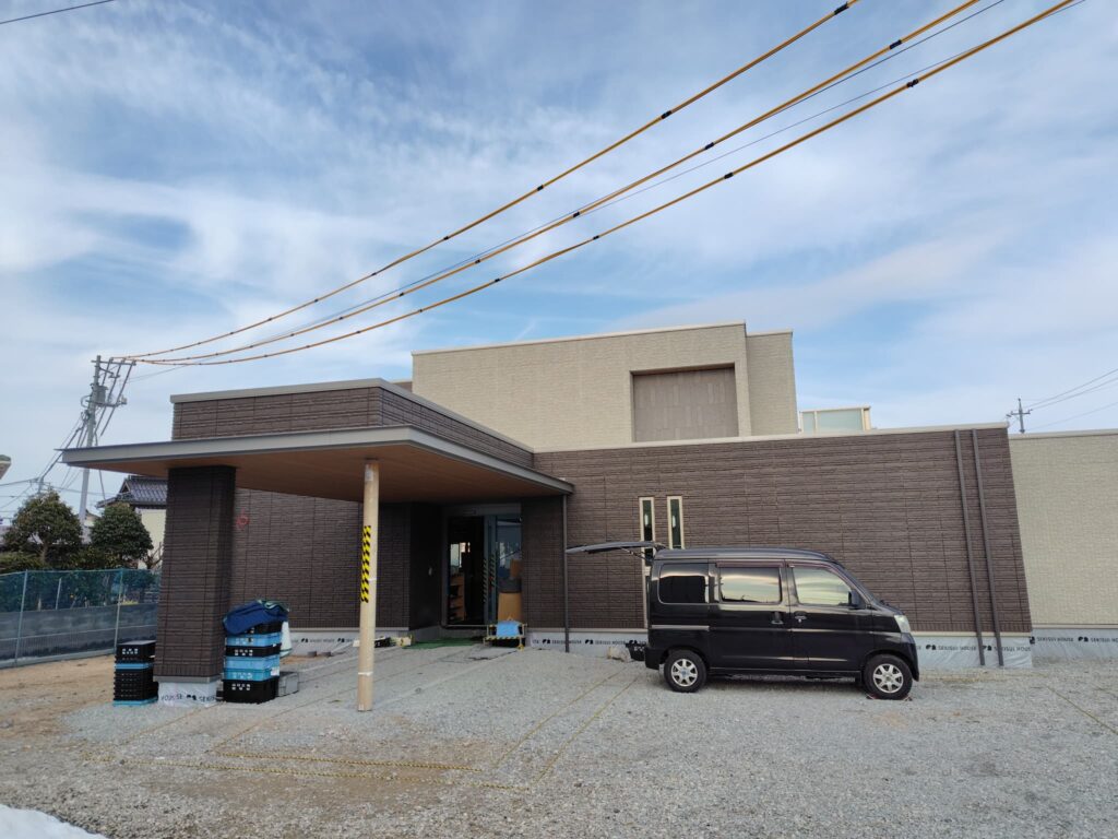 幸い雪は長続きはせず、 工事は滞りなく進めていただいています。雪解けとともに周囲を覆っていた幕が取れて、外観がわかるようになってきました。